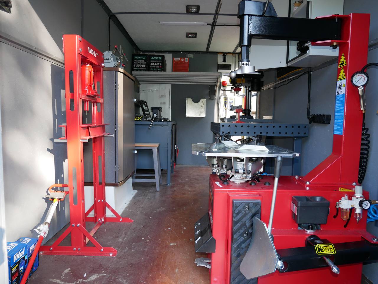 Шиномонтажний комплекс:Потужна річ, яка включає в себе необхідні засоби для ремонту автомобілів на фронті, підкачку та заміну колес, а також їхнє обслуговування.